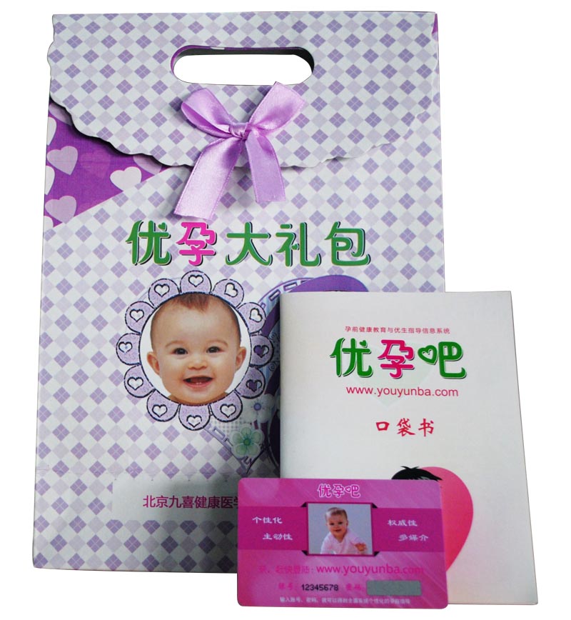 产品形式。这是礼品袋整体包装(结合产品包装进行讲解),口袋书、印有账号和密码的登陆卡、附赠优孕棋一副。“5”指的是孕前健康自我评估+4种健康指导方式,包括互联网指导、语音版指导、手机版指导和口袋书指导。“1”指的是“优孕棋”,共15关对应15道问题,在游戏中培养优孕意识,寓教于乐。比如孕前不宜多吃荷兰豆、胡萝卜还是西红柿?准备怀孕不宜穿牛仔裤、游泳还是吃海鲜?看似很简单的题目,其实很多人不知道。